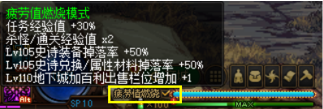 tip:改版后最后几点疲劳进图时,可以选择燃烧疲劳模式,全图享受燃烧模式buff哦。