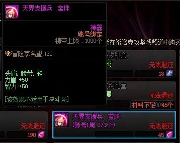 ②冒险团商店每个月可以兑换3件105级神器装备,105级神器装备强度,加成名望与100级史诗相当,是给小号凑名望的不二之选