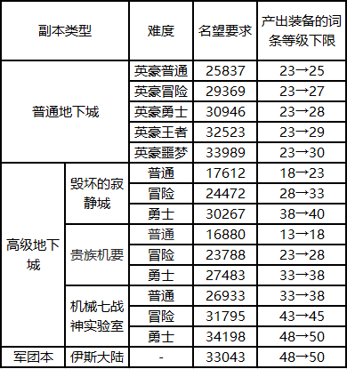 针对“副本词条产出效率低且过于随机”的问题,我们将提升以下副本的产出词条等级下限,同时重点加强所有难度高级副本的产出效率。具体数据如下表: