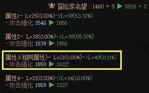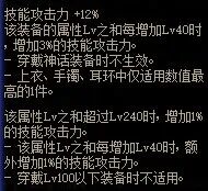 ②技能攻击力提升另外,对上衣、手镯、耳环部位,在不穿戴神话装备的情况下,装备词条等级之和每增加40点,均可为这件装备额外获取3%的技工,对冒险家战斗力的提升占有举足轻重的地位。(这个属性为上衣/手镯/耳环部位取高值适用)