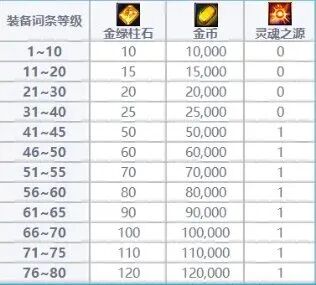 在国服922版本即将上线新的功能完美喂养即‘100%喂养’,只需额外支付金绿柱石、游戏币、灵魂之源即可使不同成长属性的装备获得100%的经验(当前普通成长模式下,不同属性的装备进行属性成长只可获得30%的经验)。100%喂养所需要消耗的材料数量如图表所示:
