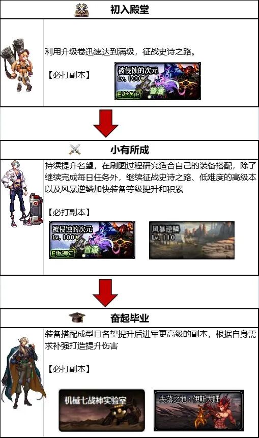 110级版本装备获取和成长系统较之前版本有很大不同,但是也正是因为这些改动能够让回归或者新加入的小伙伴比以往更快速的追上大部队,花费更少的时间成为一线玩家。此外,相比以前版本,110级版本选择更加灵活,各种副本都没有强制组队的需求,单人进行攻坚也不会损失奖励,游戏过程中更加灵活,即可以快速追赶老玩家也可以单人慢慢游戏进行伪单机畅玩。个人提升顺序可以参考下图。
