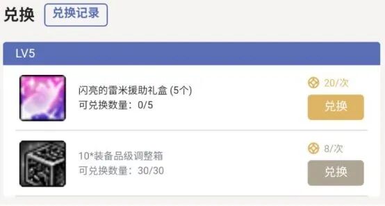 在有了装备模板后,需要提升则会涉及到装备的打造。装备的打造自然少不了增幅与强化。下面来盘点一下各类能获得增幅器以及强化器的常驻兑换商店。①不渝之咏兑换商店每周都能兑换增幅器,在通关攻坚战时还会随机掉落各类装备(包括增幅器),使用不渝之(通关攻坚战获得材料)进行兑换。