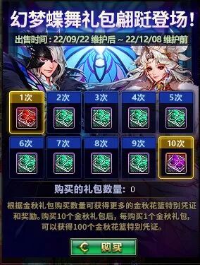 金秋礼包相关道具,同过往节日礼包一样,分为四个部分,分别是礼包本身、多买多送、花篮商店和积分商城。第一部分:礼包本身