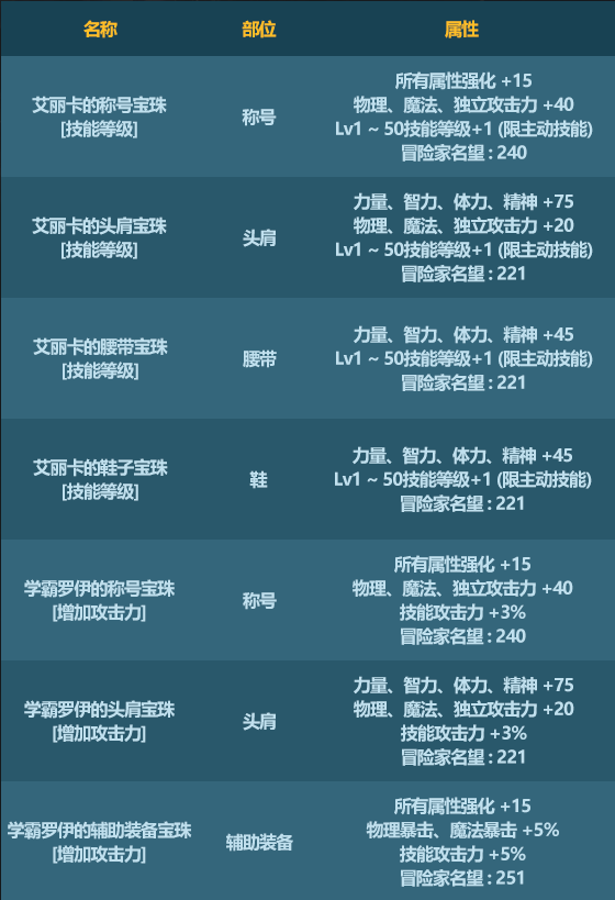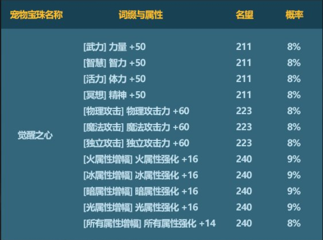 新增了一枚14全属强宝珠,其余宝珠无属性变化。