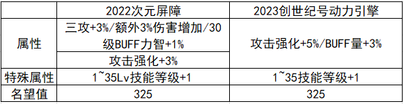 基础属性没有改变,特殊属性部分增加了三觉被动提升和3%攻击强化提升。