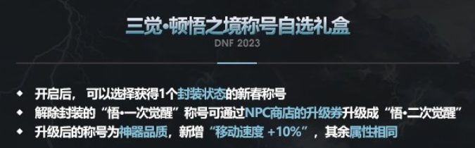可以在艾泽拉商店使用4个一觉之证兑换称号升级券,称号则会升级为神器品质,额外增添10%城镇移速。一觉之证通过开启宝物礼盒获得。(升级后只变更外观、品级和城镇移动速度,其余属性不变)