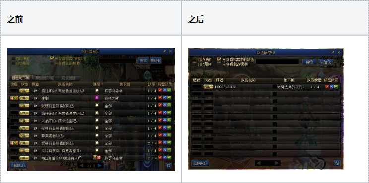 当前查找队伍窗口的‘频道’部分只显示组队/攻坚队频道的最后两位数,所以勇士要想进入自己要加入的队伍频道非常不便。在这次系统改版后,队伍窗口将完整显示‘频道’页签的频道号,方便勇士们前往要加入的队伍/攻坚队所在的频道。