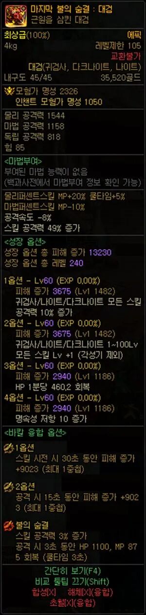 技能攻击力增加3%。 攻击时3秒内恢复HP1100,MP 875(冷却时间 3秒) |