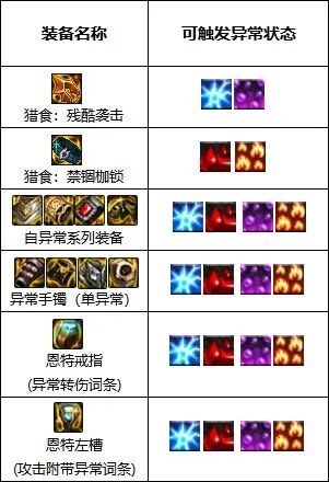 如果你想帮C挂上4种伤害异常(出血感电灼烧中毒),有以下几种方式,根据上面流派更换单件即可。