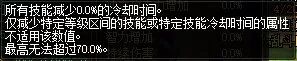 2.CD类(70%上限):冷却缩减:乘算词条,例如火龙手镯的12%冷却缩减与宠物右槽的冷却8%,冷却缩减合起来不是20%而是1-(100%-12%) x (100%-8%)=19.04%技能恢复速度:加算词条,大家都学过时间=路程÷速度,我们把原有CD比作路程,冷却缩减相当于直接减少路程,而技能恢复速度相当于加快我们的移动速度,例如远古肩提供50%恢复速度,双音戒指提供30%,那合起来我们就有了80%的速度提升,一个CD20秒的技能,算上上面的火龙2宠物右槽我们的实际CD就是(20 x (1-19.04%)) ÷ (100%+80%) = 8.995秒