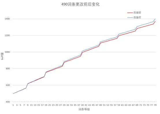 固定装备buff量公式改动改版前奶系装备buff量跟随等级有两套公式,一种增长率较高,一种较低,大部分固定装备的前两条词条为低增长率词条,这也是为什么有些固定装备1级时buff量明明比自定义高,但是等级高了之后会被反超的原因下图为490buff量固定词条改版前后的buff量对比