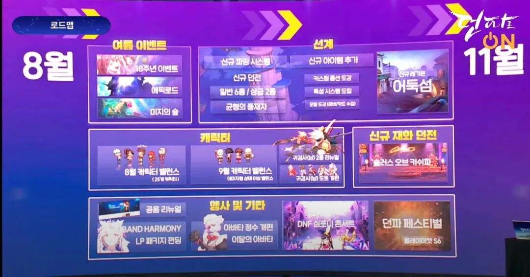 8-11月份日程夏季活动 史诗之路 未知森林仙界新刷装系统 新道具新地城 新自定义图鉴 新军团本 普通6/高级2图 新系统 均衡的仲裁者 灰暗岛角色8月角色平衡(25个)9月角色平衡(伤害性异常状态优化)鬼剑士点阵重做鬼剑士二觉优化新财物地城