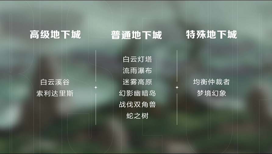 2个高级地下城、6个普通地下城、2个特殊地下城