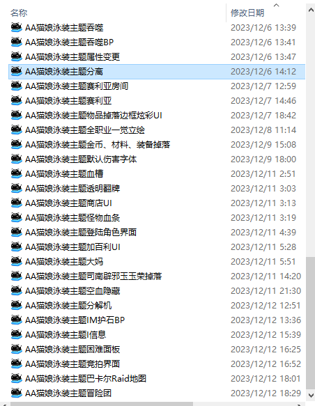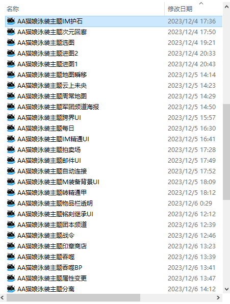 女朋友不女朋友的我们先不管了,先看看《猫娘泳装主题全套界面补丁》。这套补丁于昨日完工,今天根据兄弟们的反馈,更新了一些东西,2.0版本打包已经完成,共计补丁文件73个。感谢兄弟们的反馈,这套补丁会越来越完善。下面附上这套补丁的文件截图: