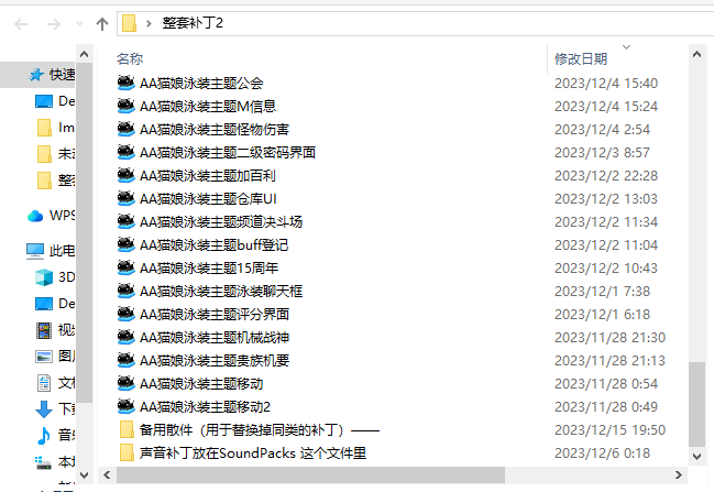 以上就是本期的全部内容了,下面就是汇报一下《猫娘泳装主题全套界面补丁》的更新日志(最新更新时间12.15)。