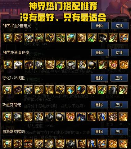 总体而言,现阶段国服热度较高的几套装备搭配有:出血9自定义、神剑流、觉醒流,这些搭配都具有独特性,并且获得了资深玩家的广泛认可。