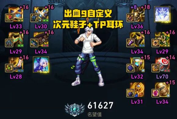 与“出血9自定义”相似,主要特色是升级次元鞋子与蓝色耳环以提升TP技能效果。