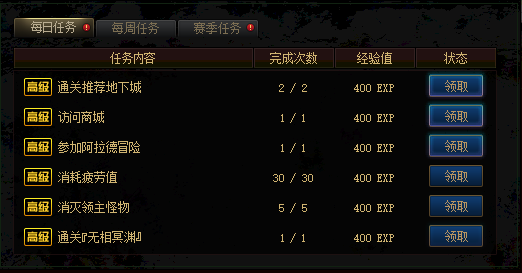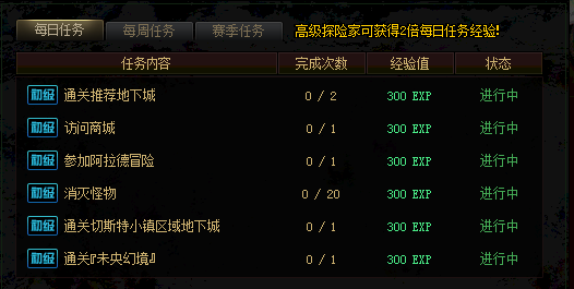 首先,每日任务在上线后应在第一时间快速完成。每日任务是由游戏内的日常内容组成的,所以在完成上并没有太大的难度,而每日提供的基础等级也较多。