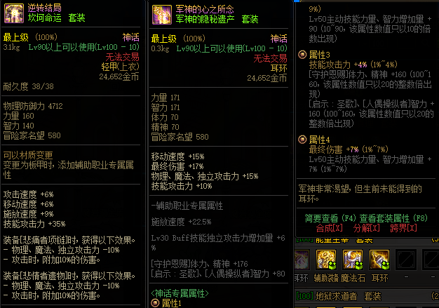 这里纯个人建议向大家推荐10件神话,基本符合大部分输出职业需求,如果侥幸能爆出来,就当毕业了:逆转结局、军神耳环、大幽魂3件、次元耳环、时之魅影、时间之针、水果衣、灵宝耳环!