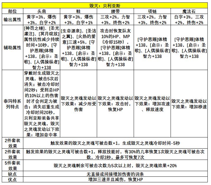 如果完全追求极致的伤害,可以在阿斯特罗斯、雷德梅恩和泰玛特中选择搭配;想要极致奶量可以选择五件泰玛特作为目标。