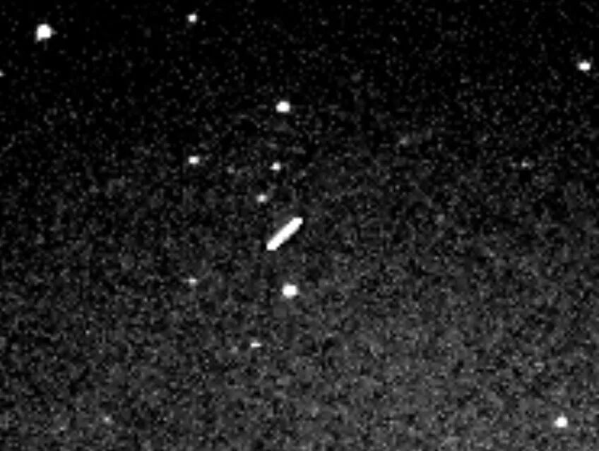 1997年拍到的1994 PC1。由于运动速度较快,在星空背景上小行星变成了一条亮线。意大利索尔马诺天文台