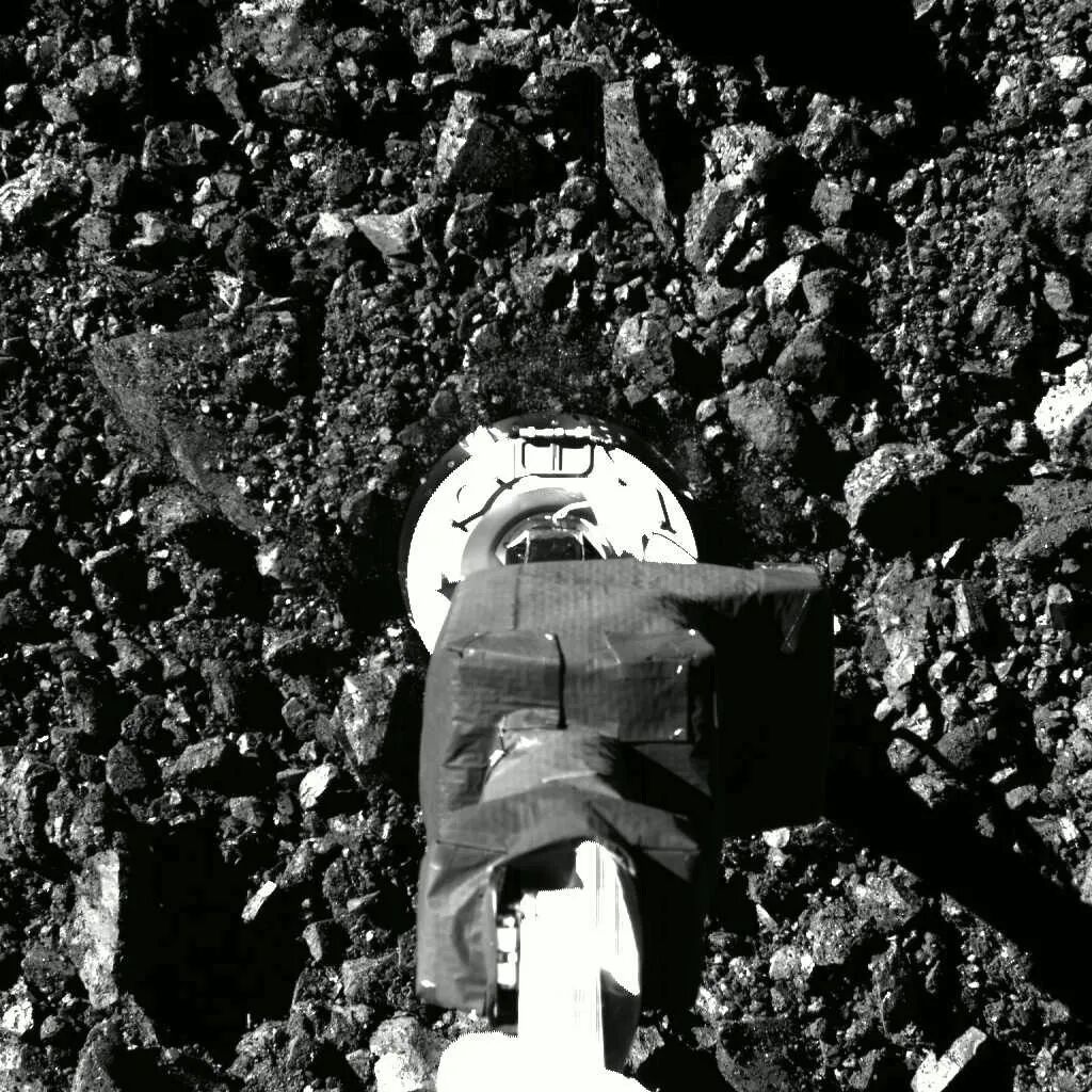 冥王有一条细长的“足”,足的前端有一个采样器。它慢慢靠近伯努,在轻触伯努表面的几秒内,用压缩氮气冲击伯努表面,并将飞溅而起的物质收集起来。