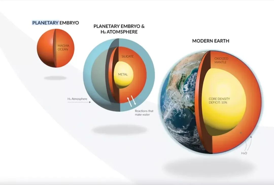 研究人员表示,大量氢在地球形成初期进入到熔融的地球内部,可以解释两个悬而未决的谜:一是地球表面的大量液态水从何而来;二是主要由铁元素构成的地核为何其密度要比理论预期值低。