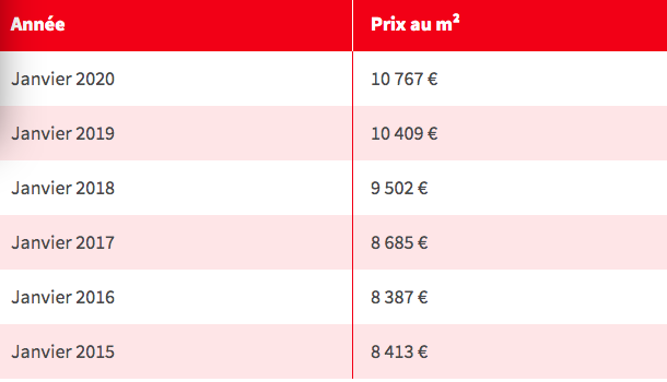 从2015年到2020年到巴黎平均房价变化 图源:seloger