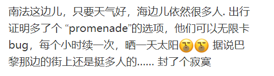 上周日,小编也发起了一个互动话题,让大家分享一下封城之后的第一个周末,而不少小伙伴们也在留言中分享了他们眼中的法国封城。