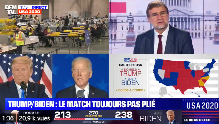 几乎所有的法国媒体都在不间断更新美国大选的时最新消息,这样的大场面小编也是头一次见。