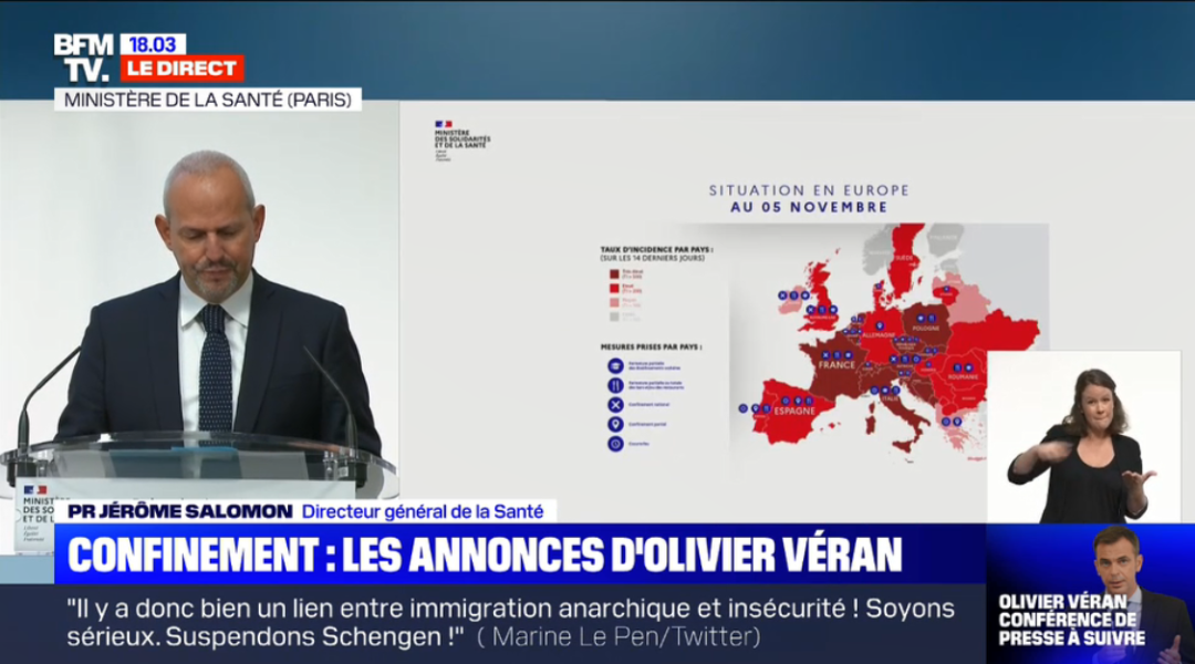 11月5日晚,法国卫生部长韦兰举行了法国疫情发布会。