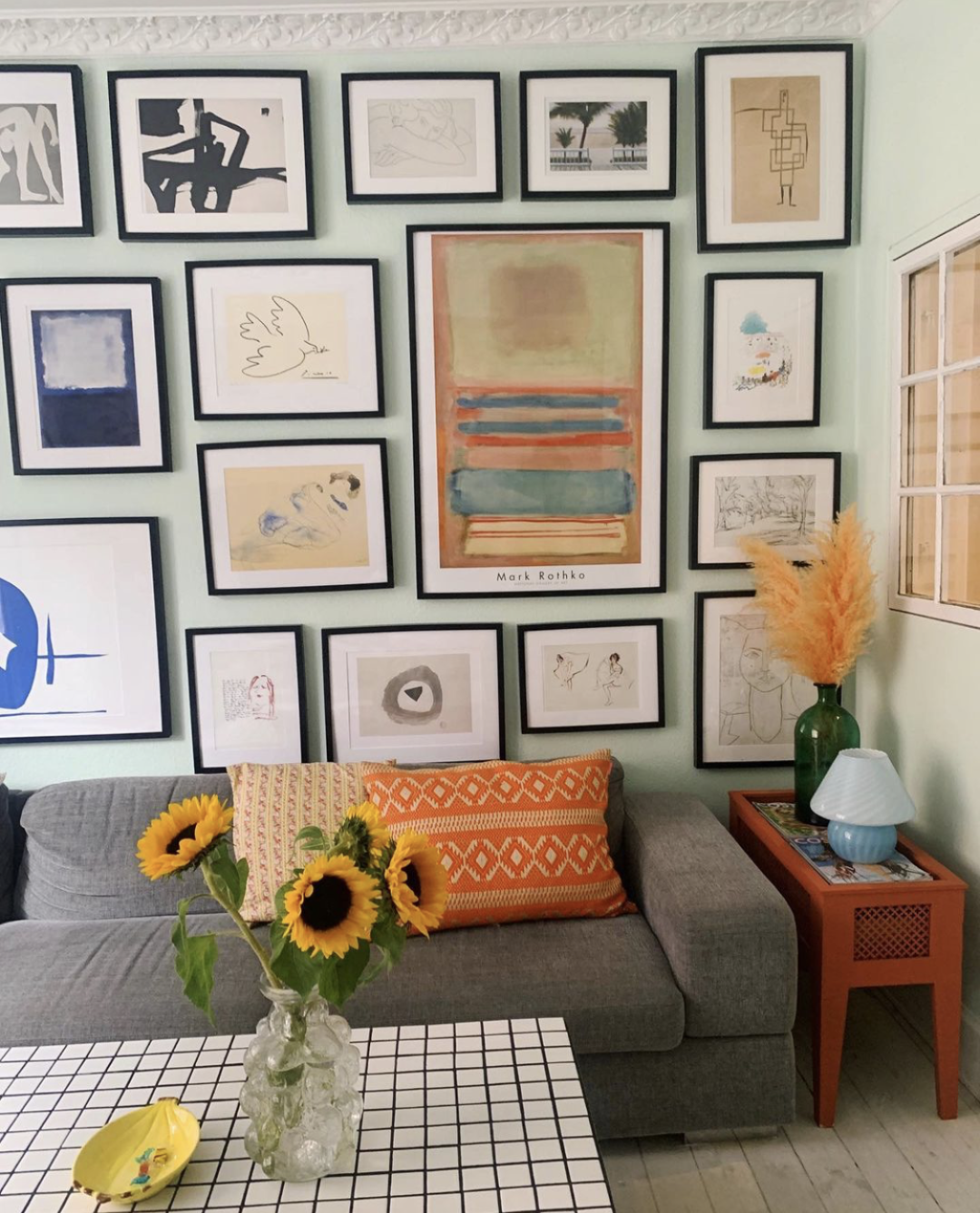 在国内的时候,我会在墙上钉一幅或者两幅插画装点一下白白的墙。但是来法国之后,我发现很多博主会把整面墙都装满插画,大大小小错落有致。想做到这种乱中有序,其实并不简单哦。