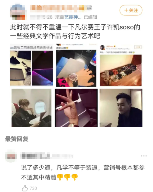 用凡学鼻祖小奶球的一句话来说:凡尔赛就是一种表演高级人生的精神。