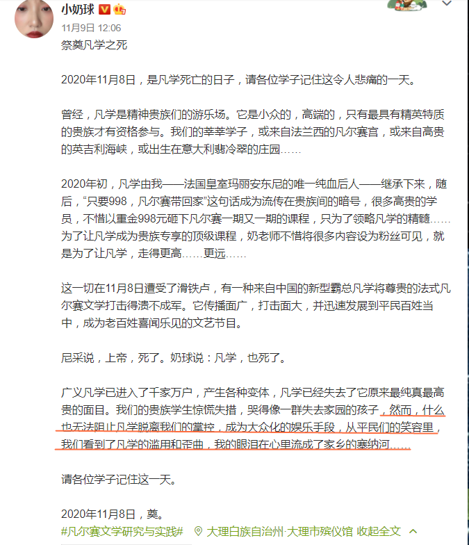 就连鼻祖小奶球都不得不发微博感叹“凡学已死!”
