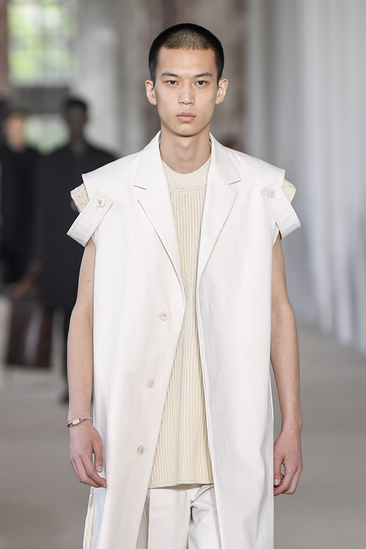 法国巴黎男装周上,模特展示Jil Sander品牌2020春夏时装新品。
