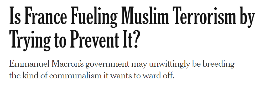纽约时报的文章:法国是否通过预防穆斯林的恐怖主义助长了恐怖事件的发生? 图源:网站截图