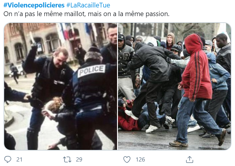 在这个过程中,警方还在用充满歧视的词语对Michel进行讽刺,除了不堪入耳的脏话之外,“肮脏的黑鬼”(sale nègre)一词更是被他们不断重复。