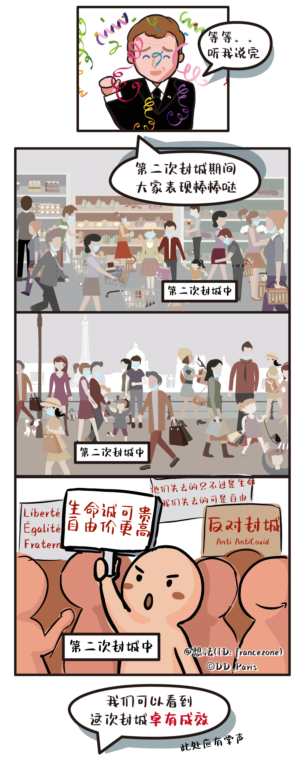 虽然封了个假城,但是这并不妨碍入戏太深的法国人脑补各种剧情,大家纷纷自由地走上街头,控诉着封城使自己失去了自由。