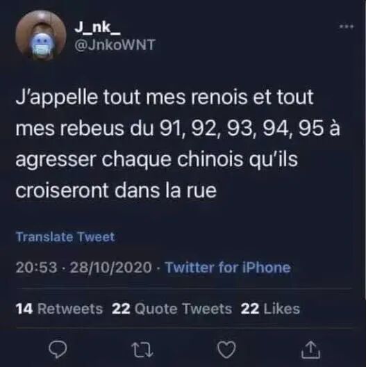 从3月底的第一次禁闭到现在,在法国的华人们也确实经历了不少的波澜:戴口罩被歧视,又或是签证过期但是无法回国。而其中引起最多关注的,就是之前刷爆了社交网络的“见一个中国人打一个”这样的恶性攻击,再加上同时间确实有留学生在巴黎被几个黑人拳打脚踢,事件也迅速在华人圈子中发酵,引起了一定的恐慌。