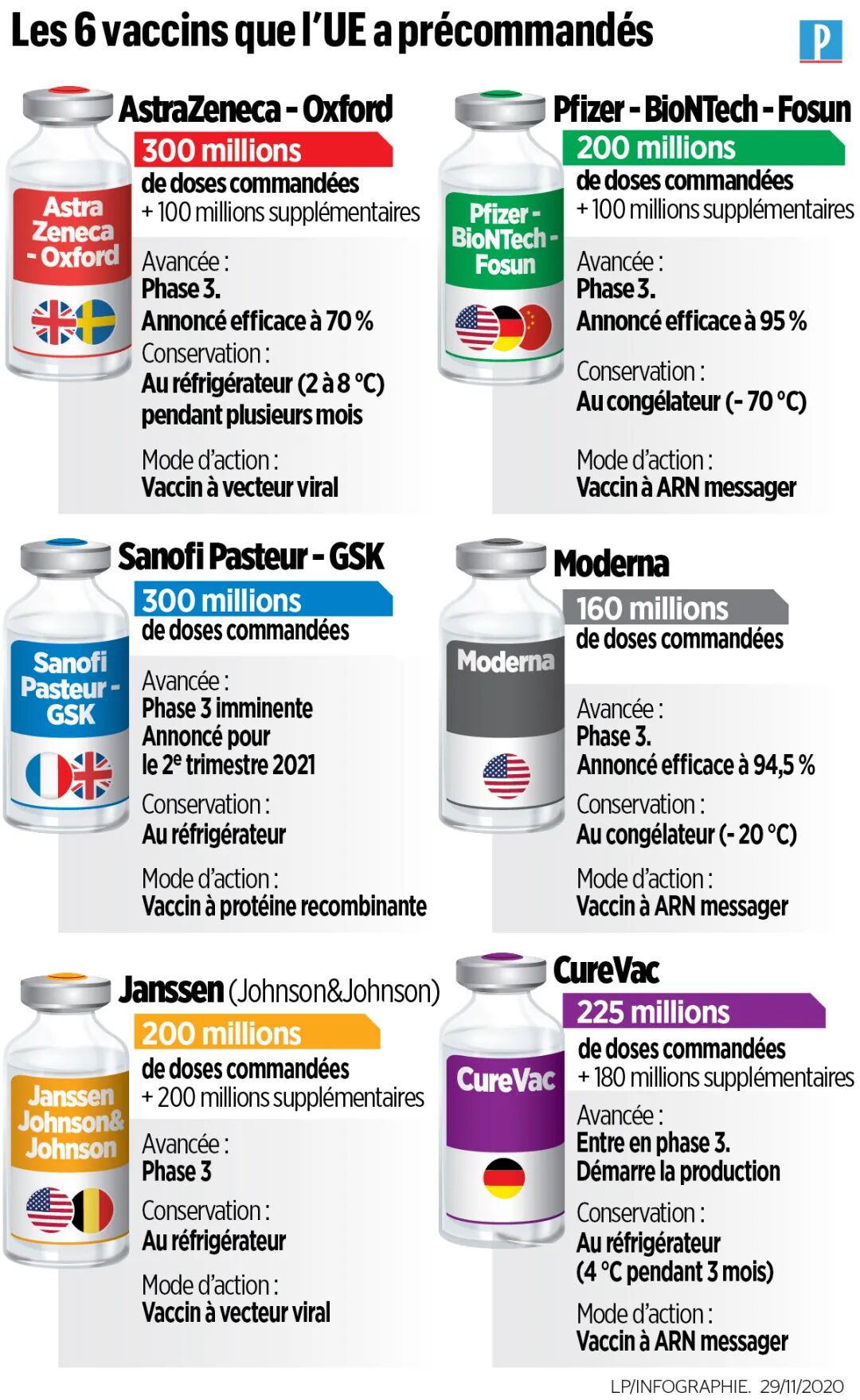 目前为止,欧盟手握6份新冠疫苗大订单,总数近14亿剂,包括阿斯利康AstraZeneca(3亿剂),强生Johnson&Johnson(2亿剂),葛兰素史克Sanofi-GSK(3亿剂),辉瑞-BioNTech(2亿剂),CureVac(2.25亿),以及Moderna(1亿6千万剂),其中的15%都会派发给法国。