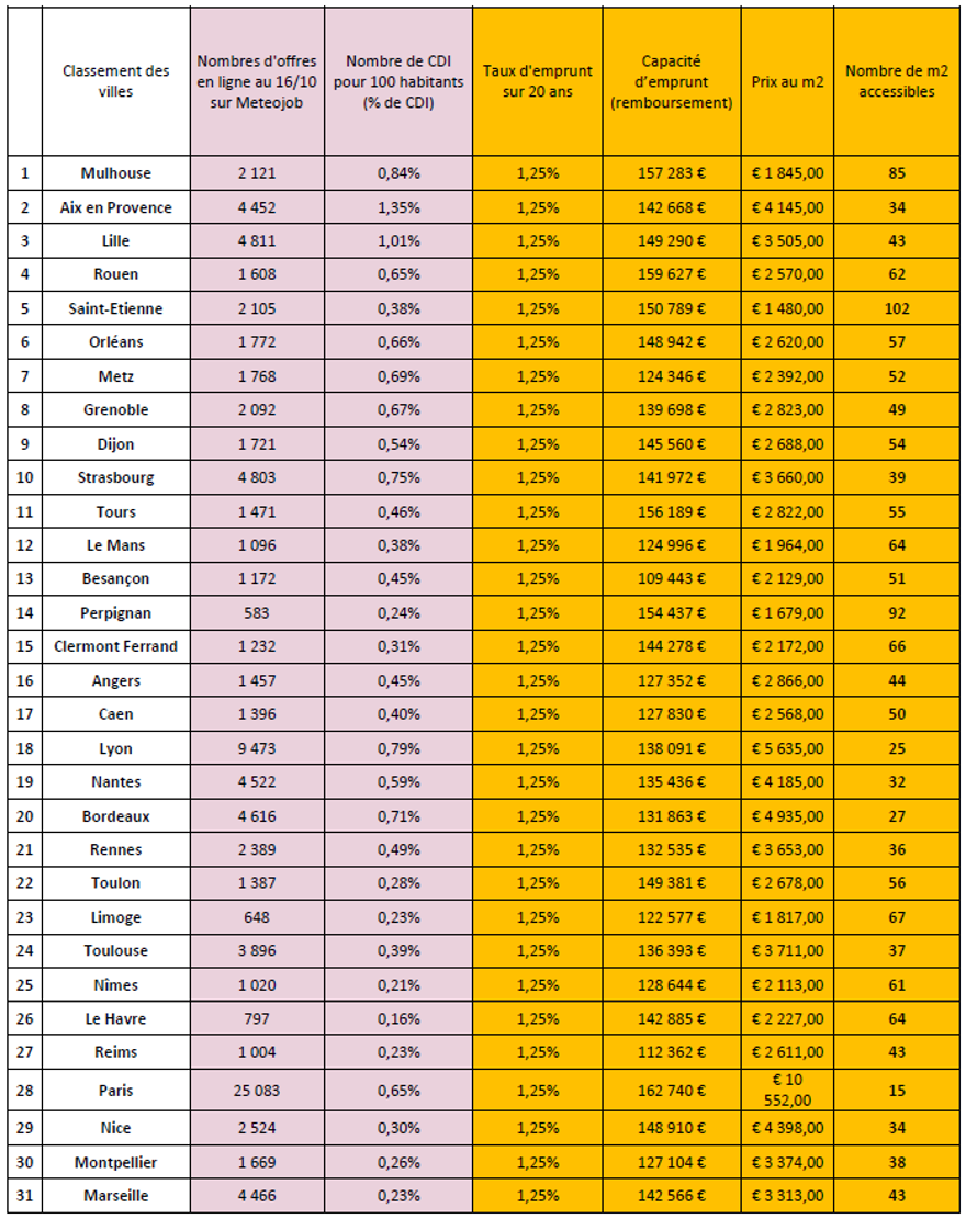 最近,法国Meteojob和Meilleurtaux机构就对法国最大的30座城市进行了一次“性价比大比拼”。