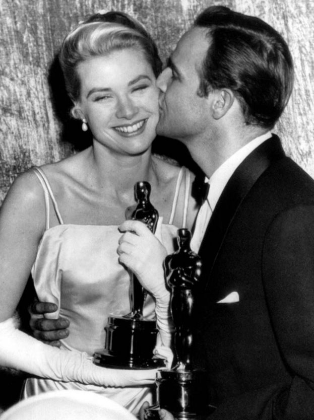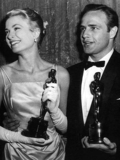格蕾丝和马龙.白兰度拿下1955年奥斯卡小金人