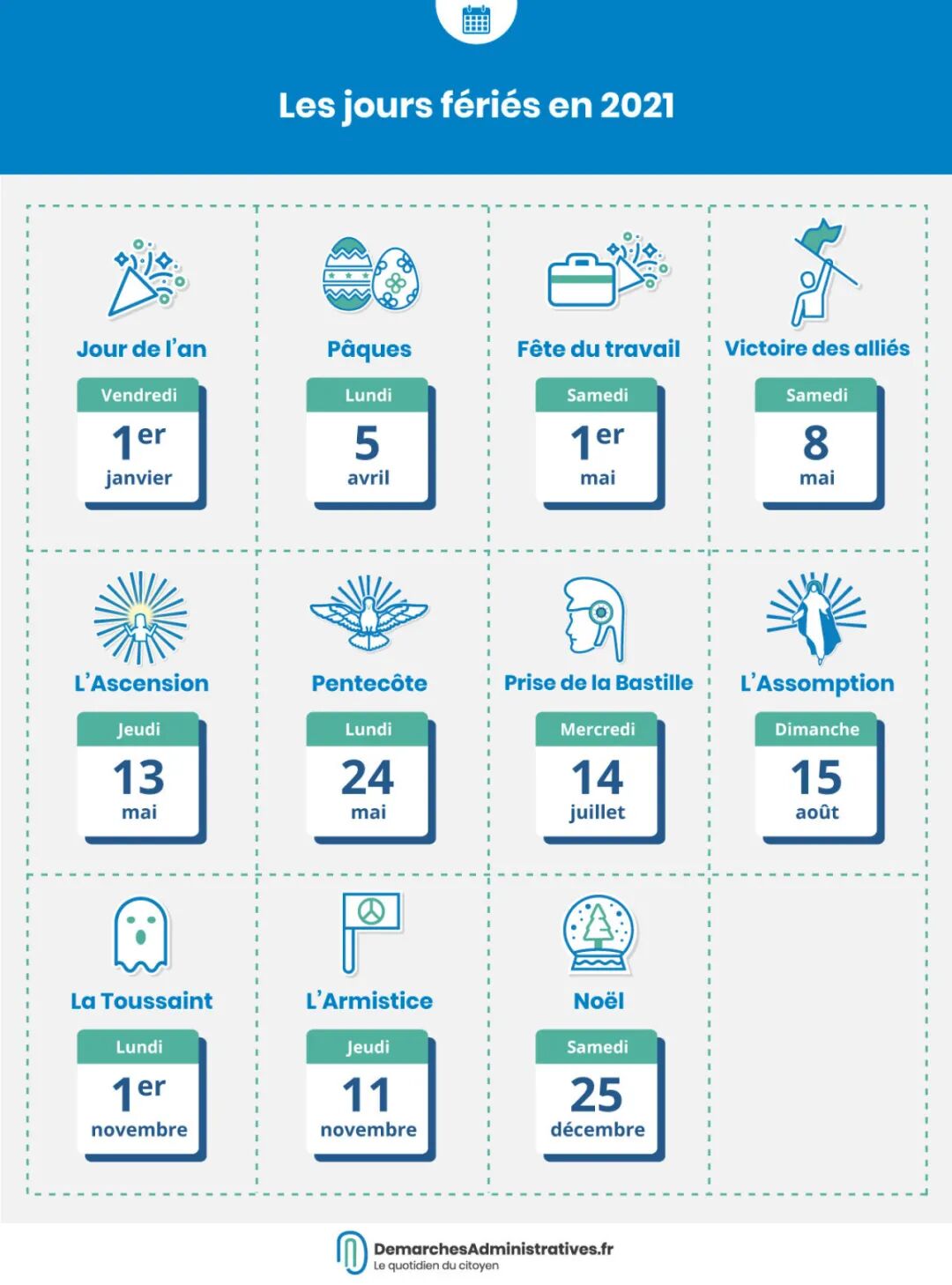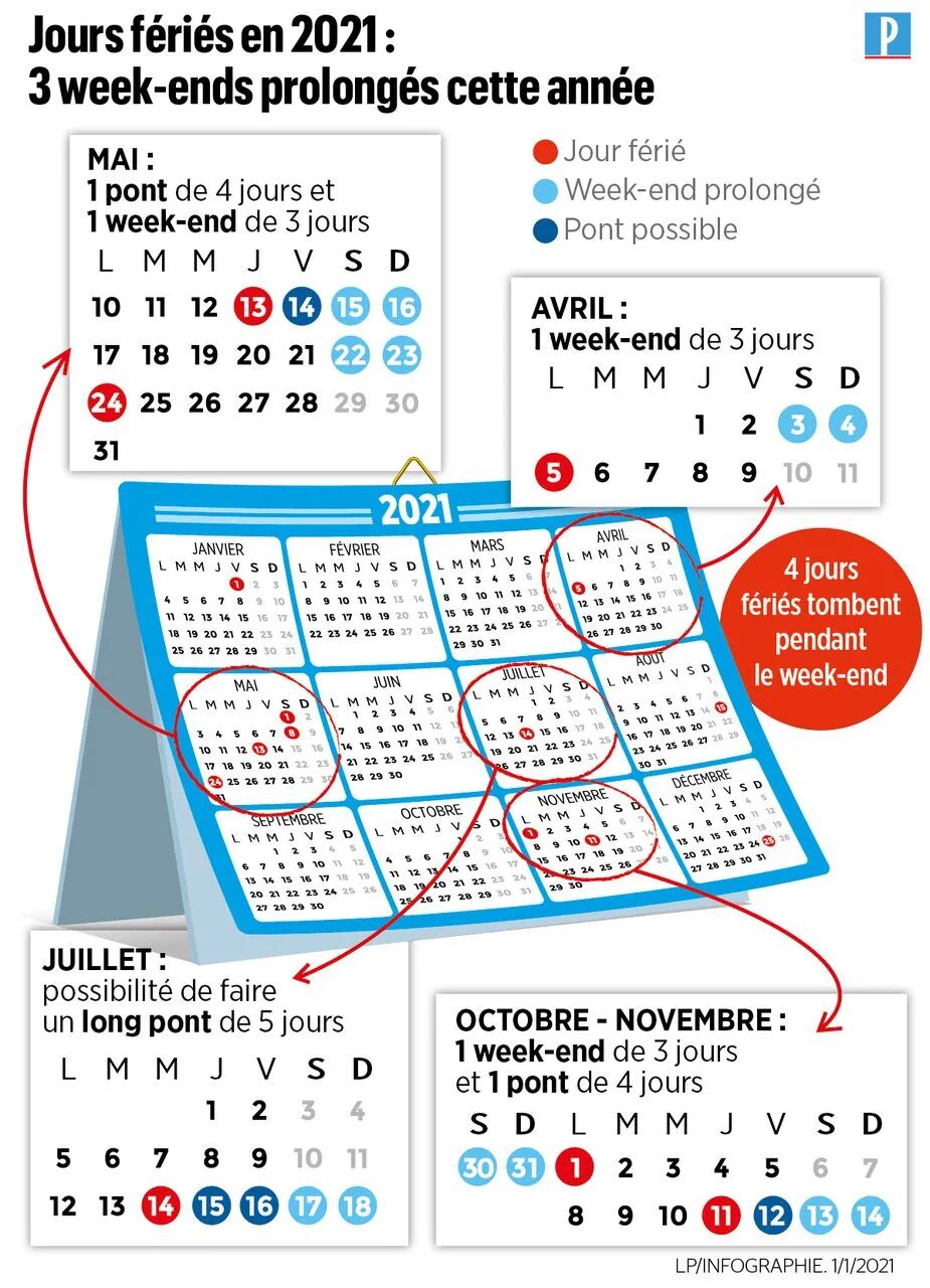 在法国,往往前一年还没过完,大家就已经迫不及待开始计算下一年的假期天数了。2021年,法国共有11个法定节假日,算上搭桥和假期前后的周末一共有22天。