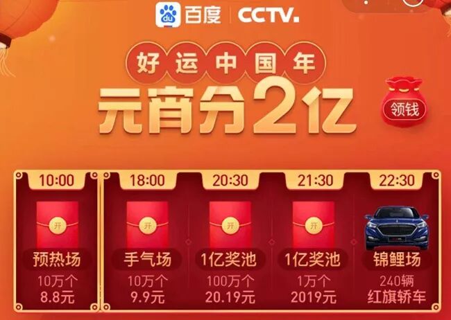 百度今年的“好运中国年”活动于15日开始,主要包括以下两大活动,红包总金额预计超过5亿元。