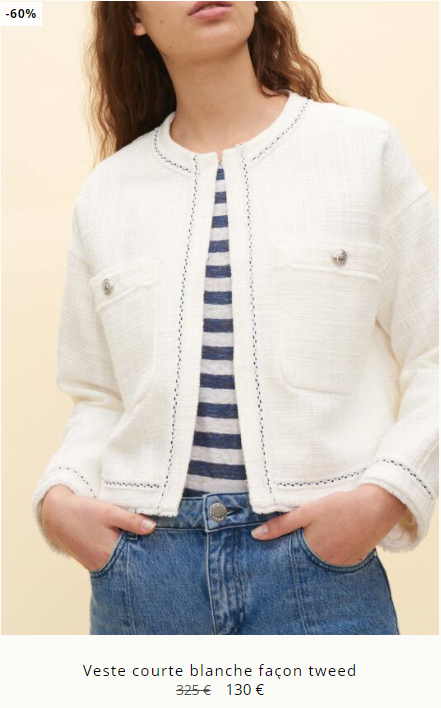 Claudie Pierlot家的衣服,就是又仙又美,通勤上班穿非常合适。有很多“小香风”,“miumiu风”的款式,特别精致,穿上出席比较重要的场合也都可!而且他们家打起折来力度可是毫不含糊,很多平时要一两百欧的单品现在几十欧就可以拿下!