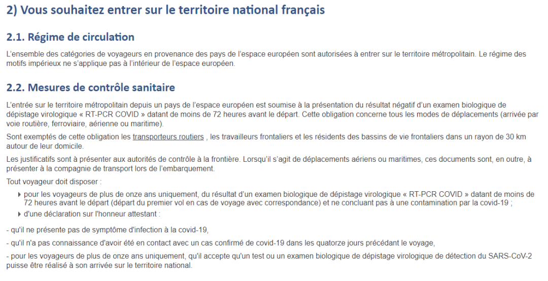 👉前往法国海外省的旅客,必须准备登机前72小时以内的阴性核酸检测报告,并根据当地的要求,准备出行理由证明及其他文件。