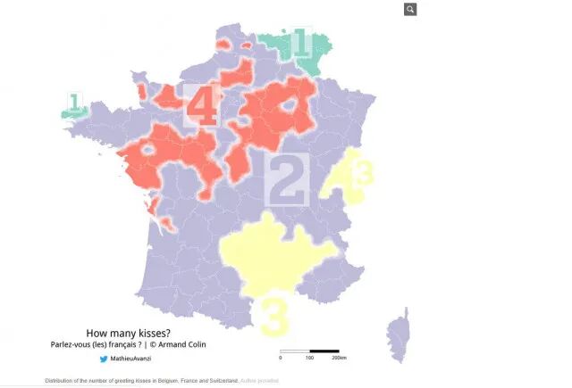 法国的“贴面礼”次数地图