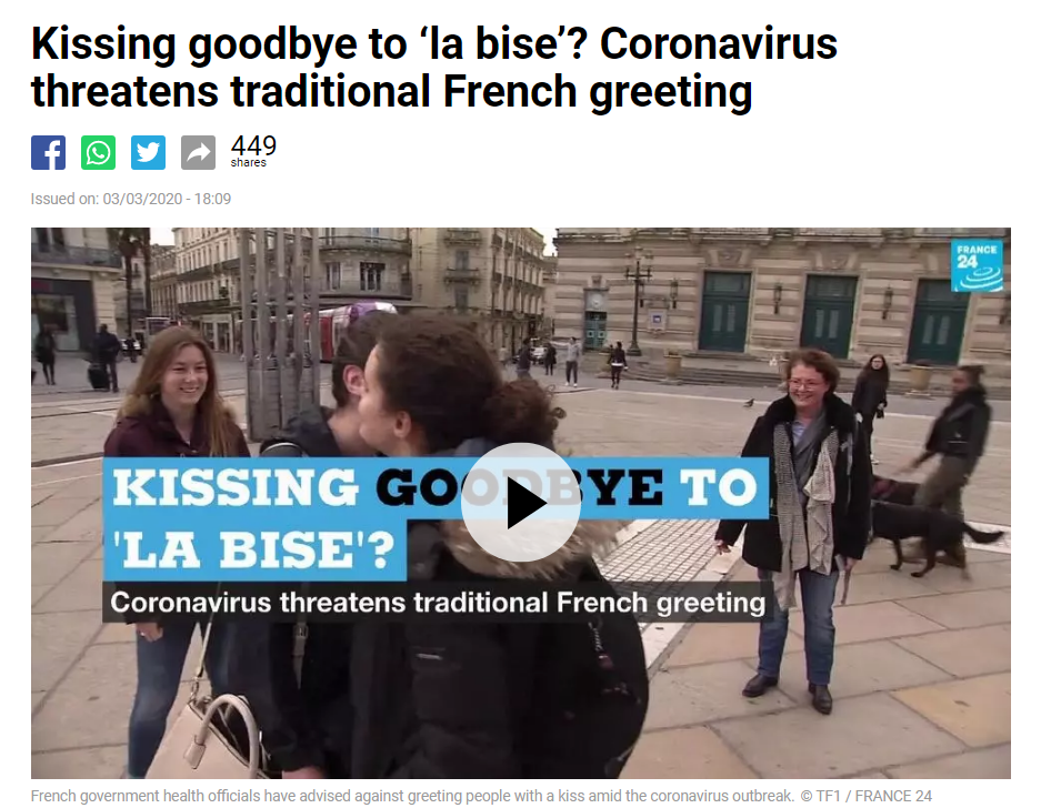 https://www.thelocal.fr/20210420/bye-bye-bise-has-covid-seen-off-the-french-kiss-greeting/https://www.france24.com/en/20200303-kissing-goodbye-to-la-bise-coronavirus-threatens-traditional-french-greeting