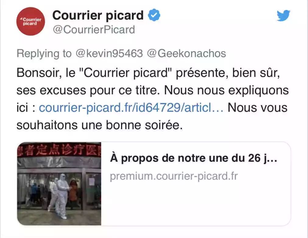 更过分的是,Le Courrier Picard(《皮卡尔邮报》)曾以"Alerte Jaune"(黄色警报)为头版标题,引发一片争议。